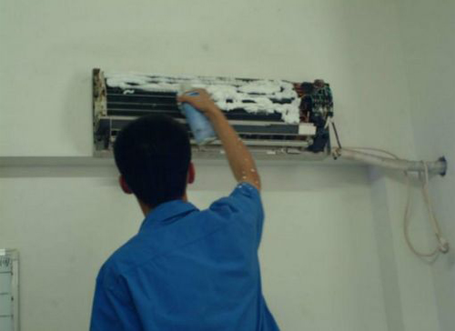 | 金明空调维修师傅给金明用户上门维修清洗空调。 |